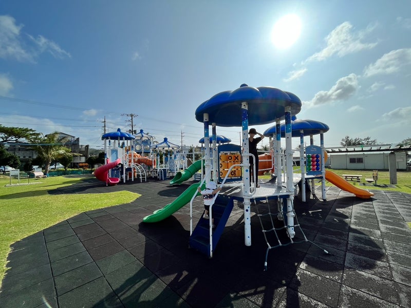 起きてからカステラで腹ごしらえし、恩納村多目的広場へ。