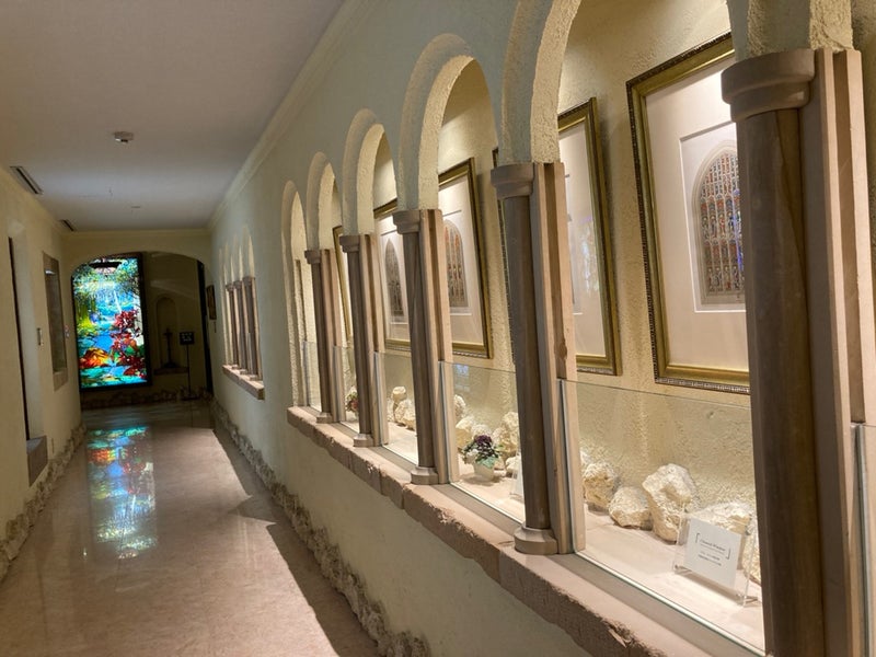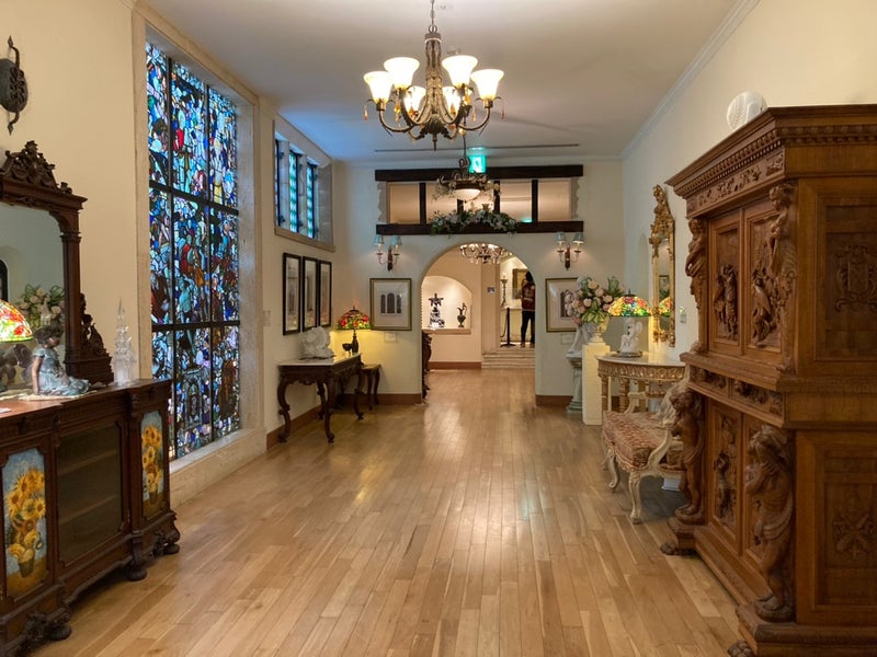こちらの美術館は、イギリスのマナーハウスを再現した建物となっているそうで、多数のアンティークステンドグラスが展示されていました。