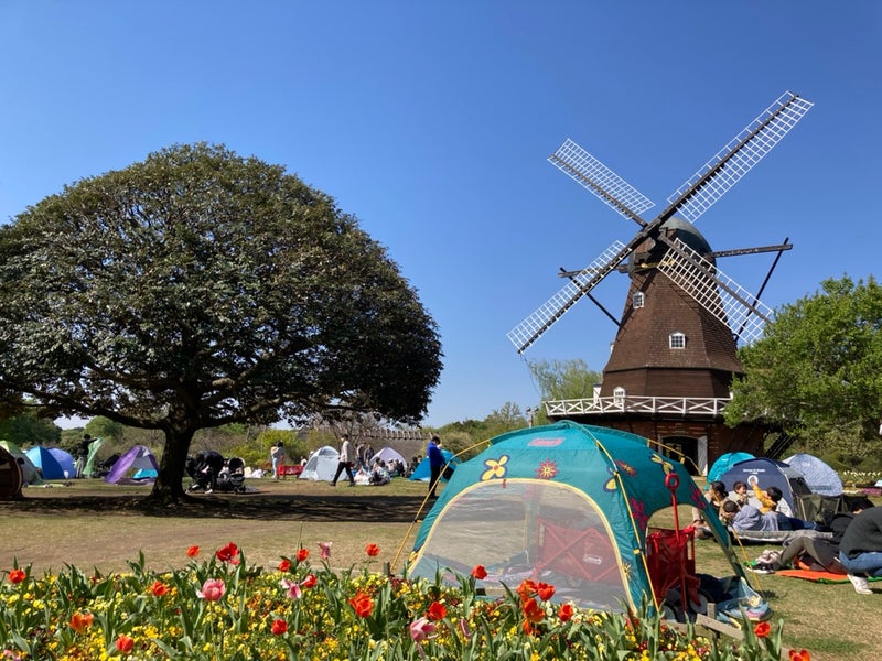 風車のまわりにはテントがたくさん!(風車とチューリップが綺麗なので、景観が損なわれてしまって個人的には残念だけど、仕方ないですね。)