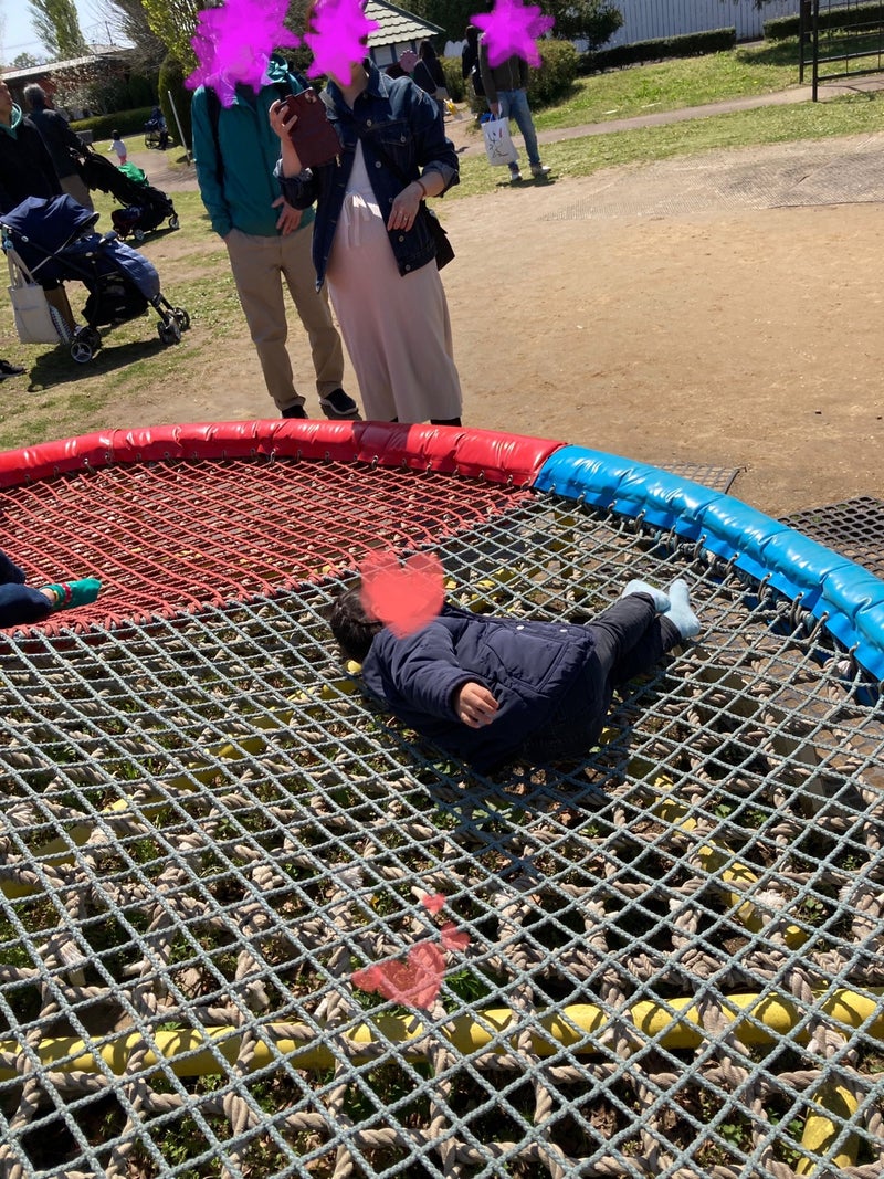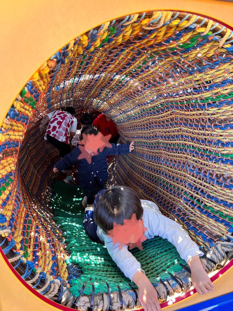 娘は楽しそうに登ったり、ゴロゴロ寝転がったりしていました。ハンモック的な?笑