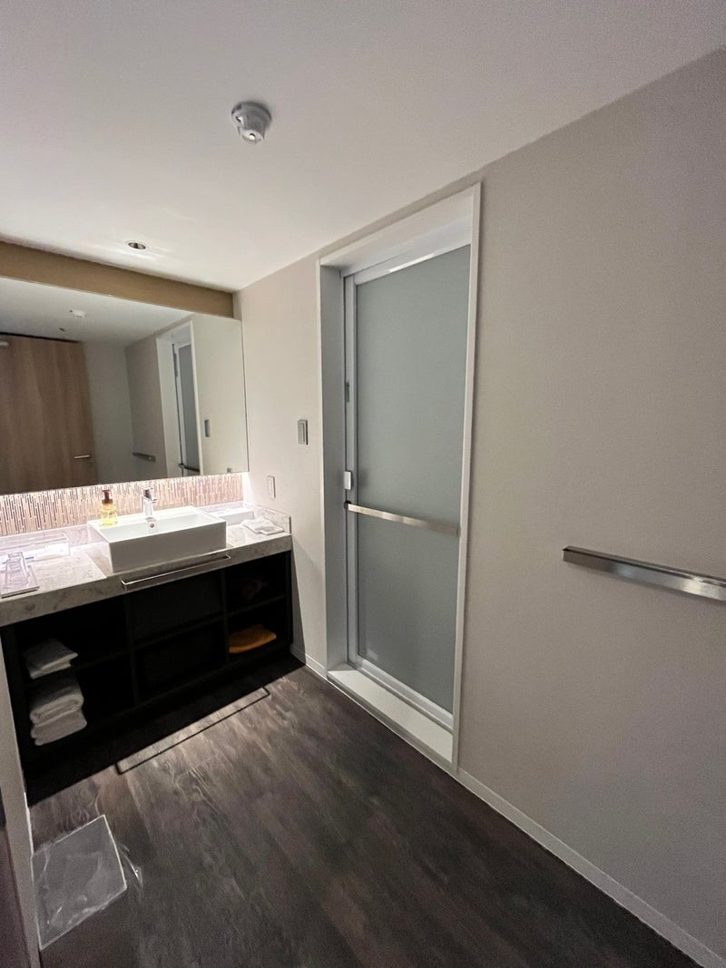 ↑洗面所(照明が暗かったので、化粧には不向きでした。)