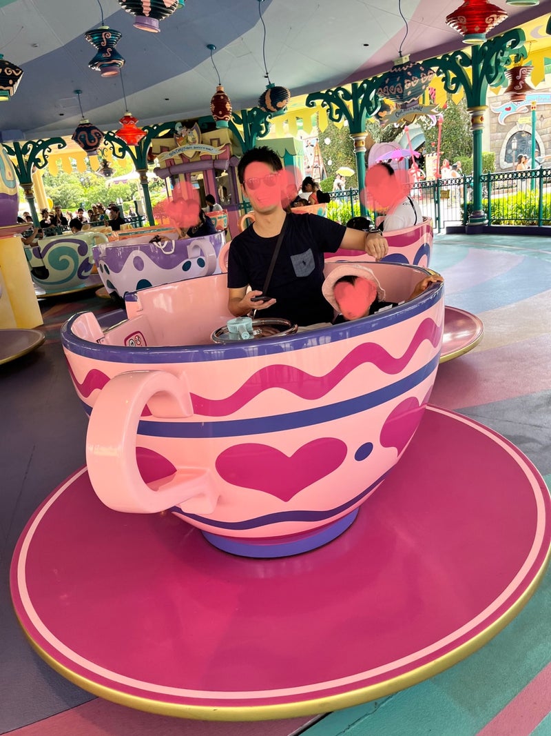 見て分かるように、娘はコーヒーカップ、メリーゴーランドが大のお気に入りのようで、乗っては「もう一回!!」と言っていました。私は三半規管が弱く、すぐ酔うため見学係(笑)