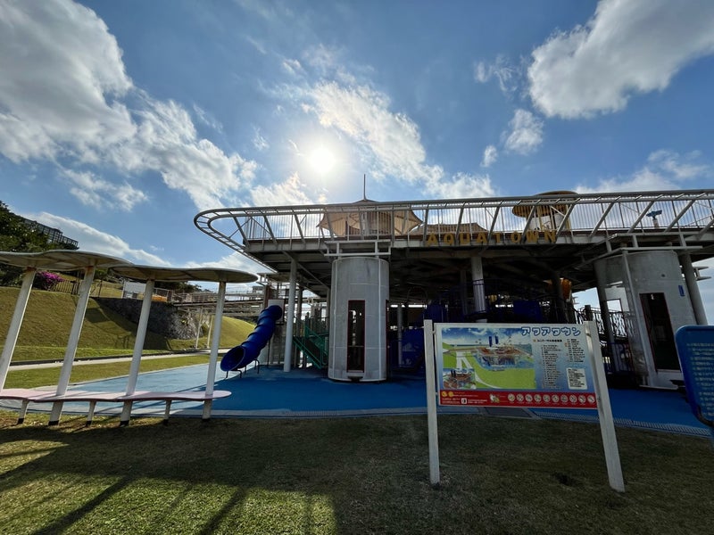 沖縄はこういう大きな遊具のある公園が多く、羨ましいかぎり。自分が親にならなかったら知らなかったことです。