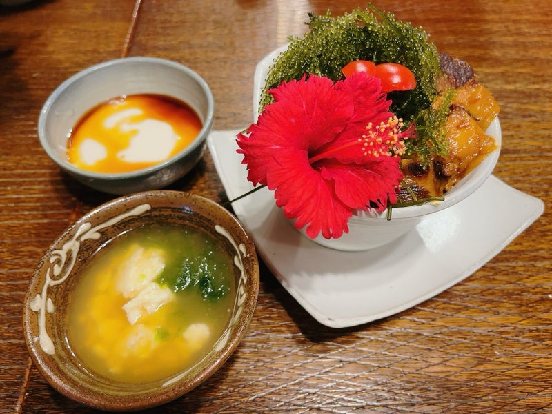 ↑海ぶどうとアグーの丼仕立て