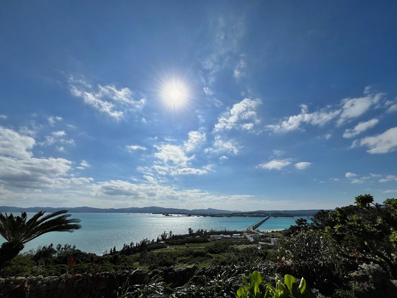 ↑カートから古宇利大橋が見えました。前回乗った時は天候が悪かったので、こんなにくっきりとは見えませんでした。晴れていたら本当に絶景です。