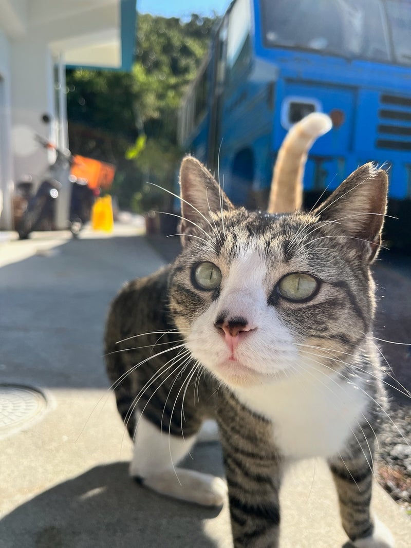 こちらのカフェにも人懐っこいネコちゃんが2匹いました。沖縄では外飼いのネコちゃんが多いのかな。