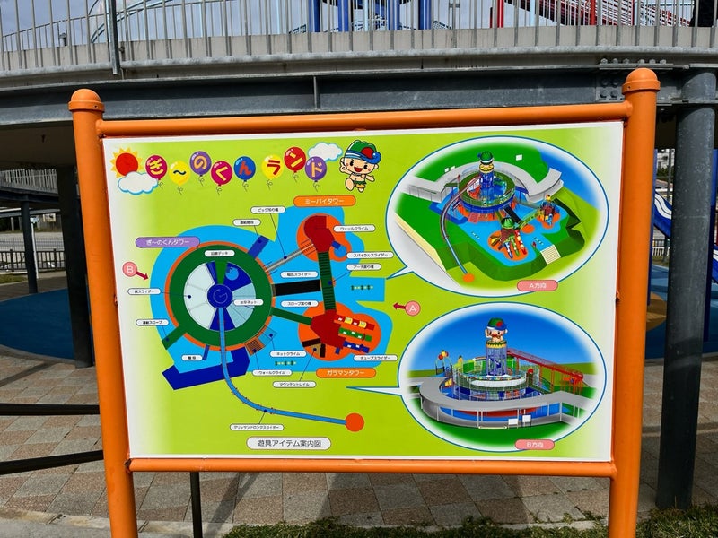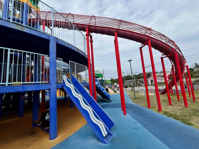 目的は、大型遊具「ぎ~のくんランド」です。この公園も夫が沖縄の公園リストにいれていたうちのひとつです。こちらの遊具も無料で遊び放題です。