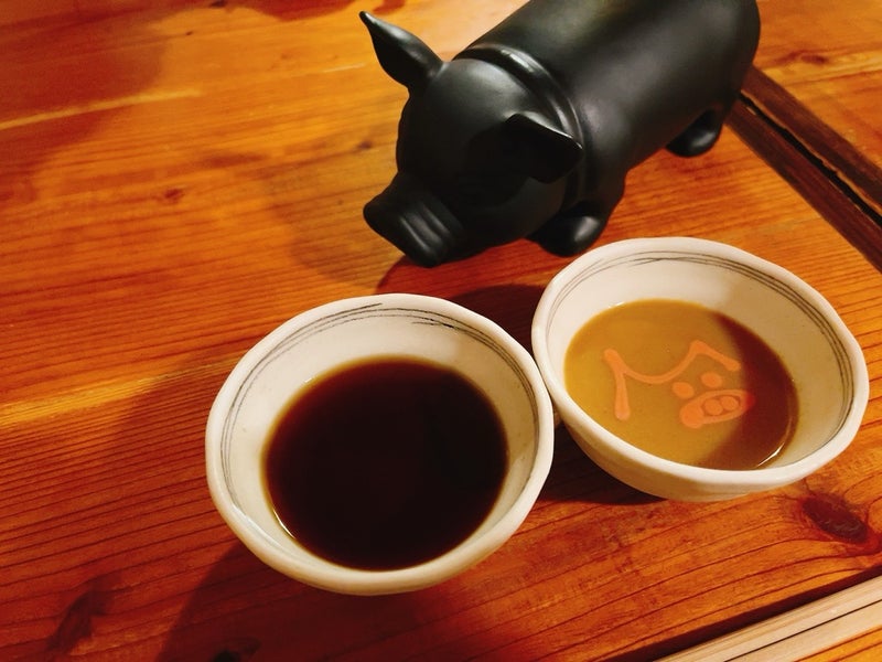 ↑タレにまで豚さんが!タレは2種類+お塩。