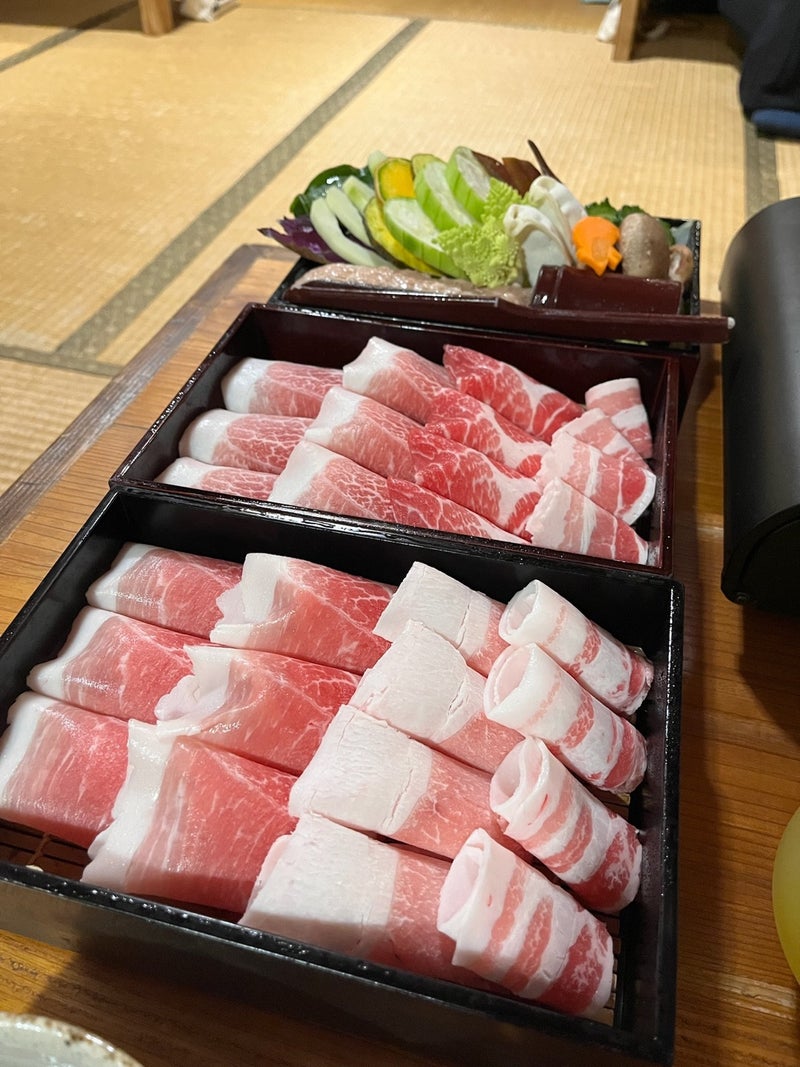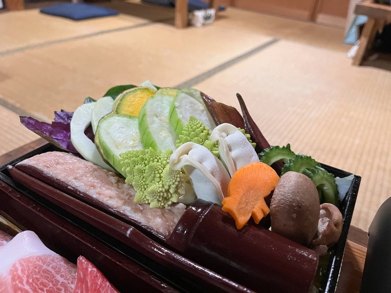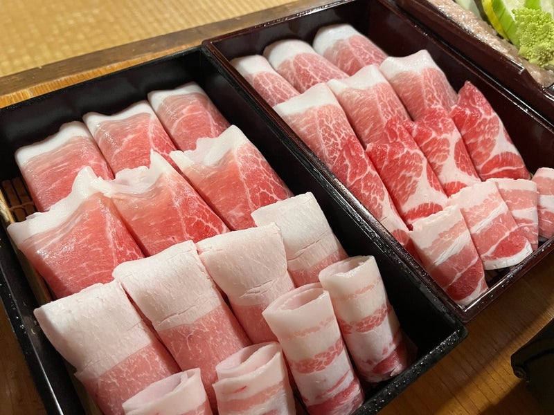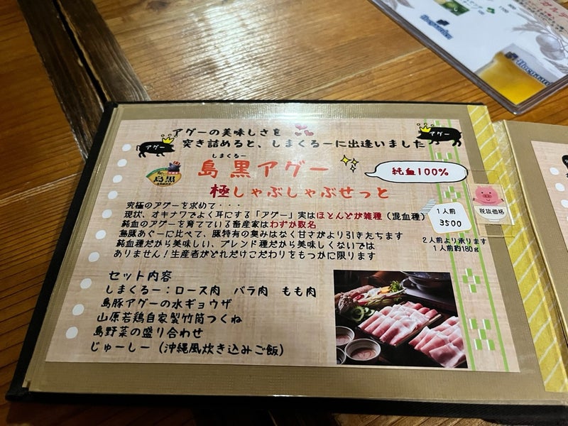 ↑すみません、どちらがどのコースかはっきりと覚えていませんが、おそらく右が島黒あぐー極しゃぶしゃぶセットかと。。。