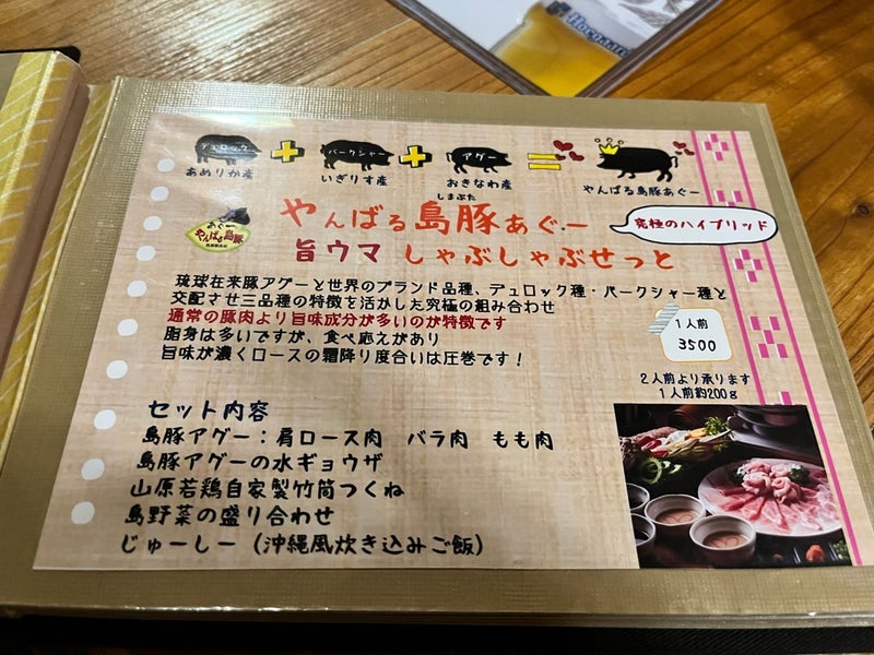 注文したのは、島黒あぐー極しゃぶしゃぶセットとやんばる島豚あぐーしゃぶしゃぶセットです。