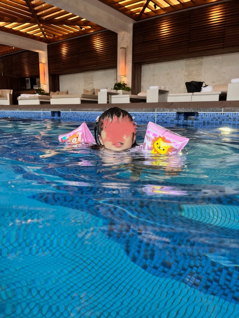 お昼寝後は、ホテルの屋内プールに行きました。(母は休憩)