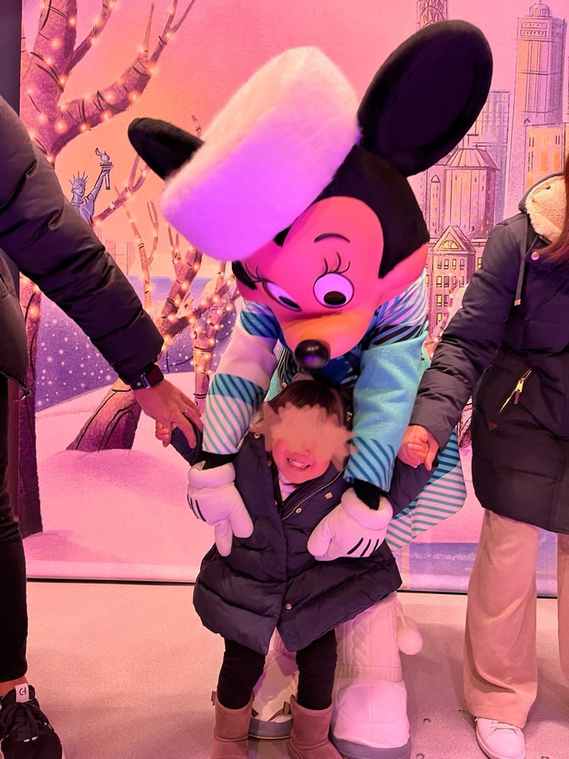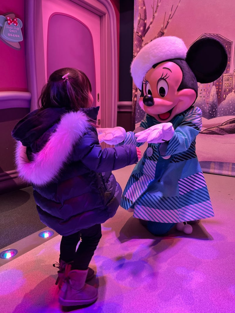 ↑ミニーちゃんの冬服、すごく可愛かったです。娘はミニーちゃんのことが気になりすぎて、ミニーちゃんの方ばかり見て、なかなかカメラの方を向いてくれませんでした(笑)