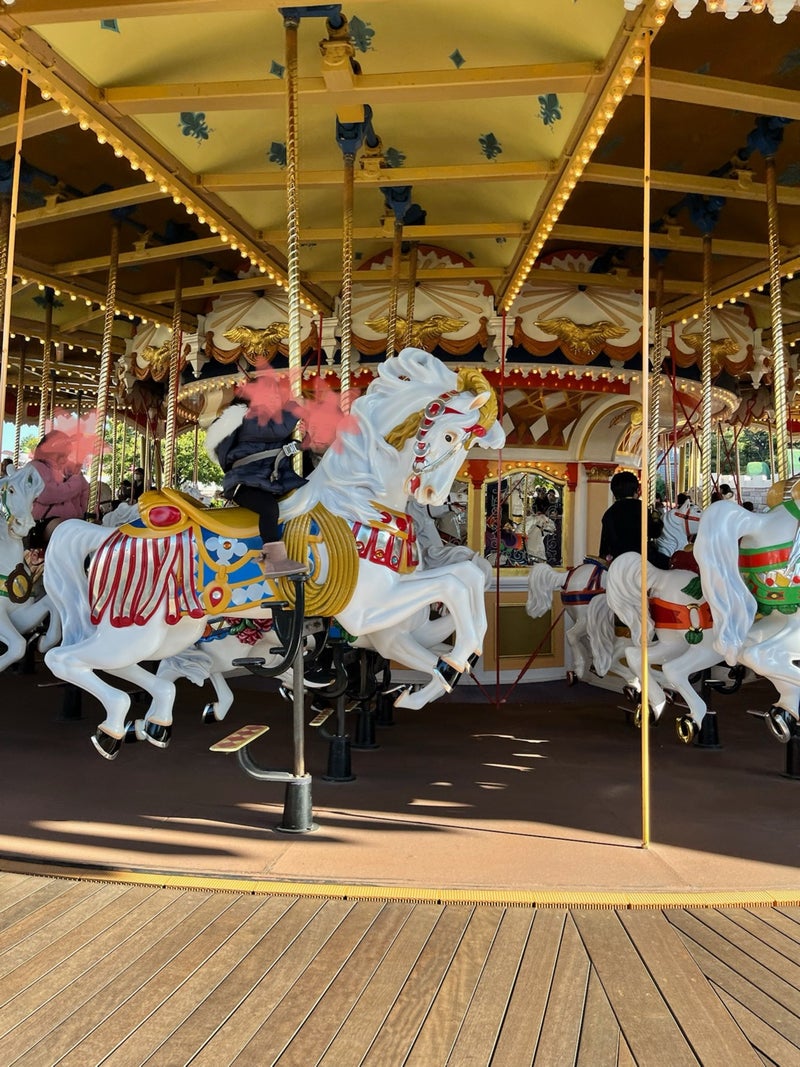相変わらず好きなアトラクションは、キャッスルカルーセル(メリーゴーランド)とアリスのティーパーティー(コーヒーカップ)で、今回も夫と何度も乗っていました。