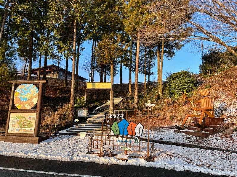 ↑まだ前日に降った雪が残っていました。階段の上に駐車場とハローウッズがありました。