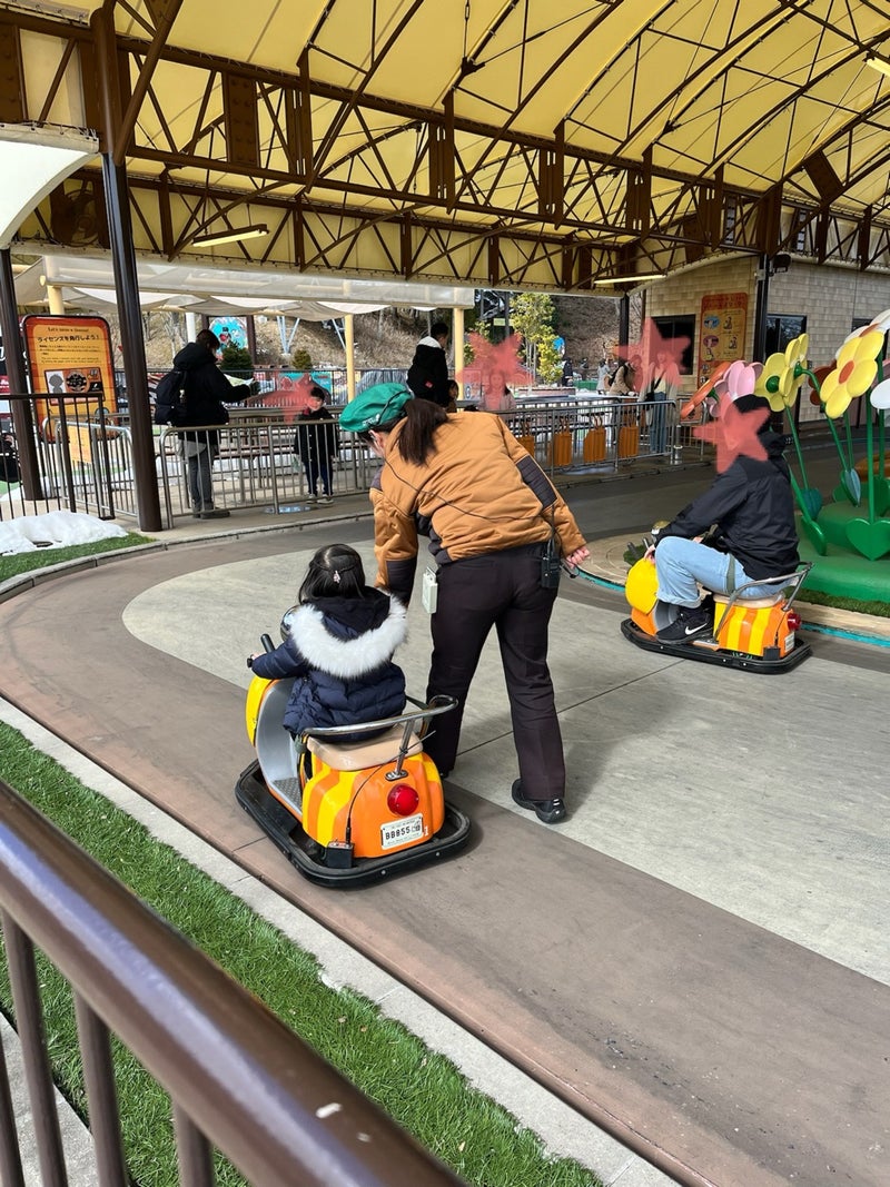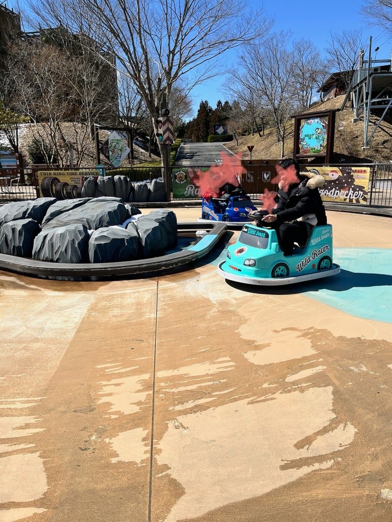 こちらも娘は運転が難しそうだったので、夫が運転していました。娘は真顔で乗っていました(笑)