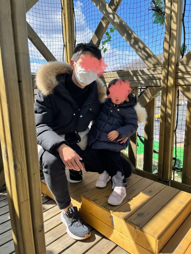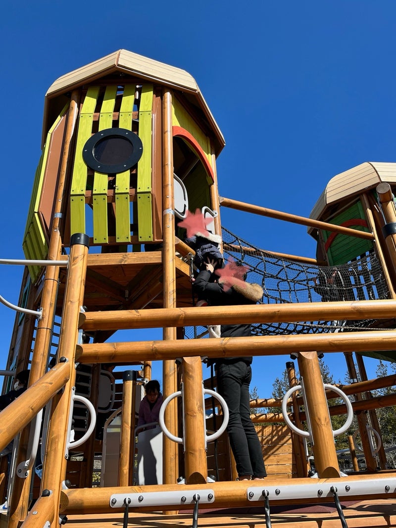 ↑最初は大きい子エリアにも挑戦していましたが、かなりハードそう。(支える夫も)