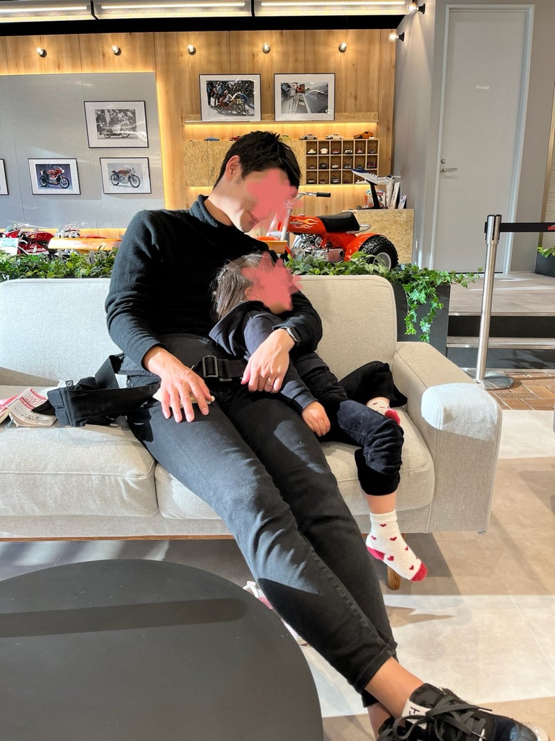 夫がコレクションホール内を見ながら、抱っこで娘を寝かせました。かなり眠たかったようで、比較的すぐに寝たようです。