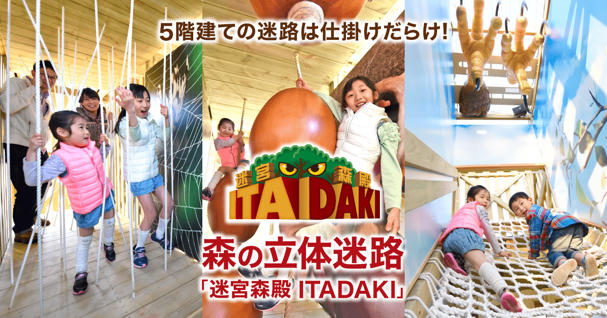 ちょうどお昼時でしたが、朝食がいつもより遅かったので、もう少し遊ぼうということになり、次は迷宮森殿 ITADAKIに向かいました。
