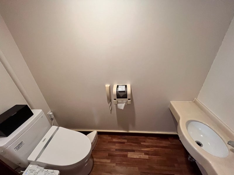 ↑トイレ横には流し台や冷蔵庫がありました。ポットや水も置かれていました。