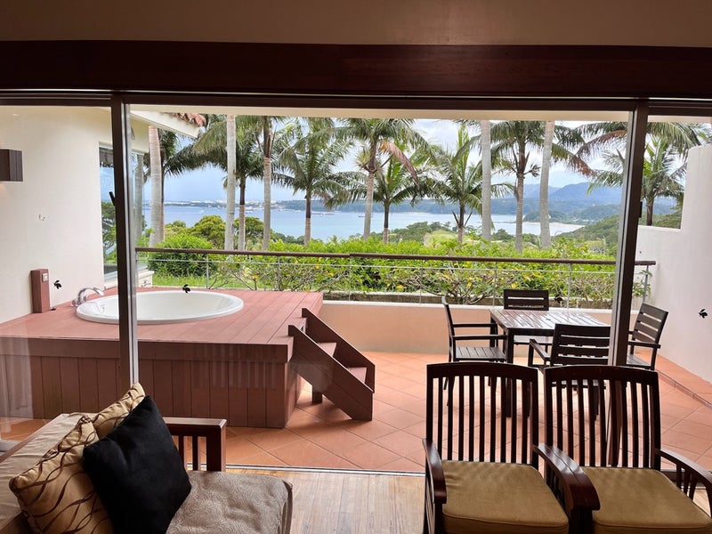 カヌチャ内の別荘地ともいえるロケーションで、ジェットバスやビューバスから一望できる海を優雅にひとりじめ。お風呂上りには、和室の畳でゆったり癒しのひとときを。
