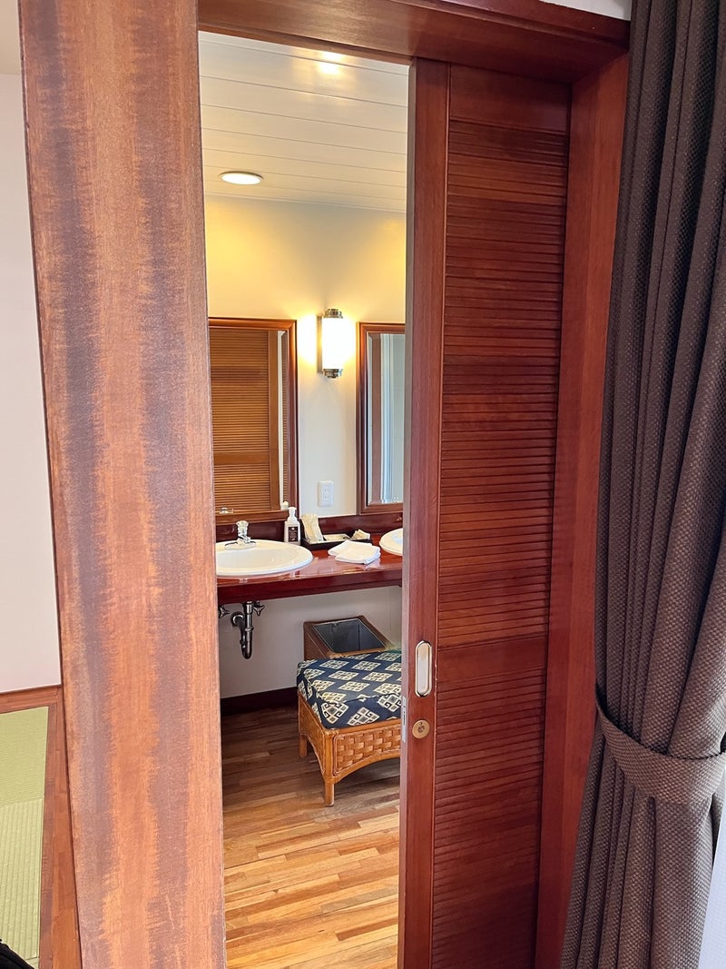 今まで泊まってきたホテルは、寝室のすぐ近くに洗面所やお風呂があることが多かったため、娘が寝ている時は起こさないようにかなり慎重にしていました。