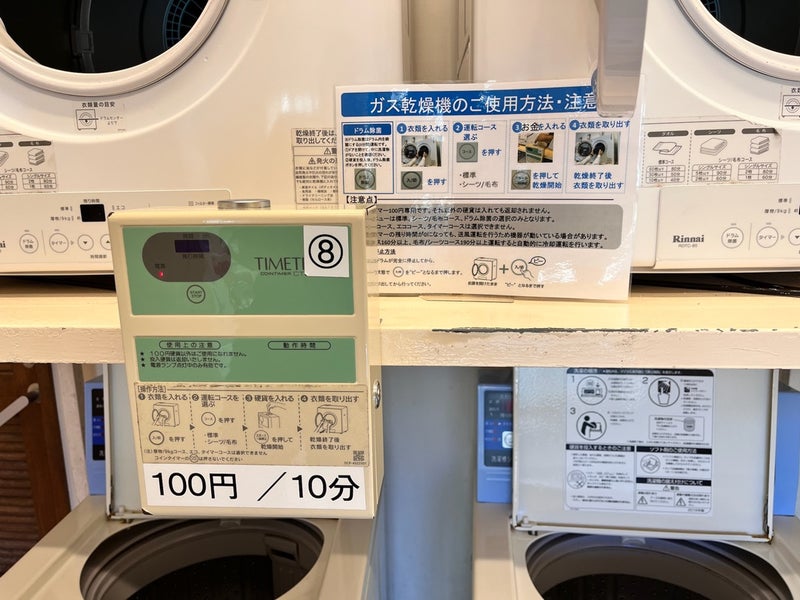 ↑ガス乾燥機もありました。10分100円。乾燥するにはどれくらいの時間が必要なのか分からなかったので、私は使いませんでした。