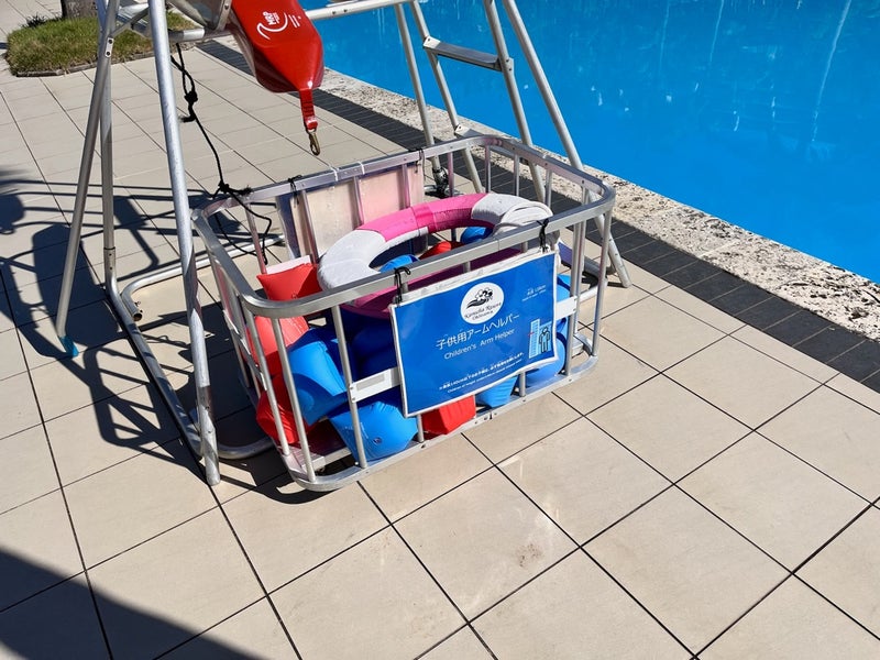 ↑プールサイドには貸出用のアームリングが置いてありました。こちらのプール監視員は非常にしっかりと見ていて、少しでも飛び込んだり危ないことをしている人がいたら注意していました。