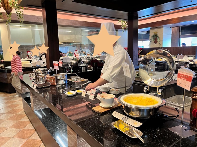 ↑目の前でオムレツを作ってもらえます。目玉焼きもありました。
