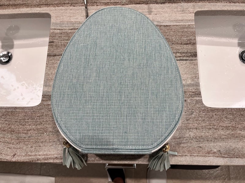 写真を撮り忘れてしまいましたが、小物などを置いておくトレイや、テレビのリモコンを収納するケースなども白と水色で統一されており、至る所でこだわりを感じました。
