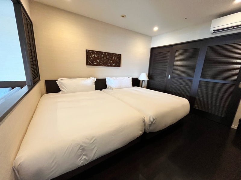 今回のお部屋は元々ベッドがくっついていましたが、くっついていない場合はスタッフの方にお願いすれば、どの部屋でも対応していただけるようです。
