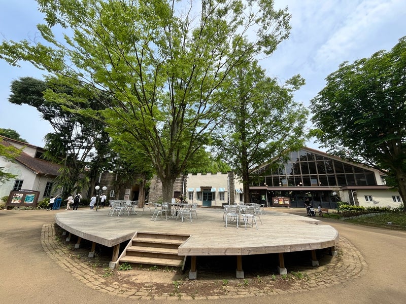 まずは園内に入って、街エリアの休憩スペースで昼食をとりました。私たちはあらかじめコンビニで購入していったのですが、園内にもレストランはありました。