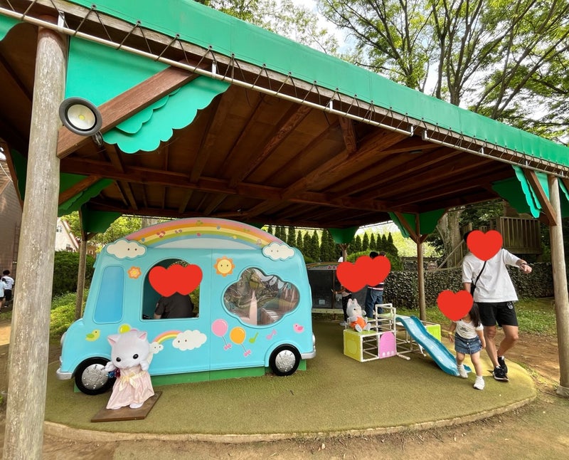 シルバニアファミリーの仲間たちが至る所にいて、見るだけでなく実際にバスの中に乗ったり、お家の中に入ったり、滑り台を滑ったりすることが出来ました。
