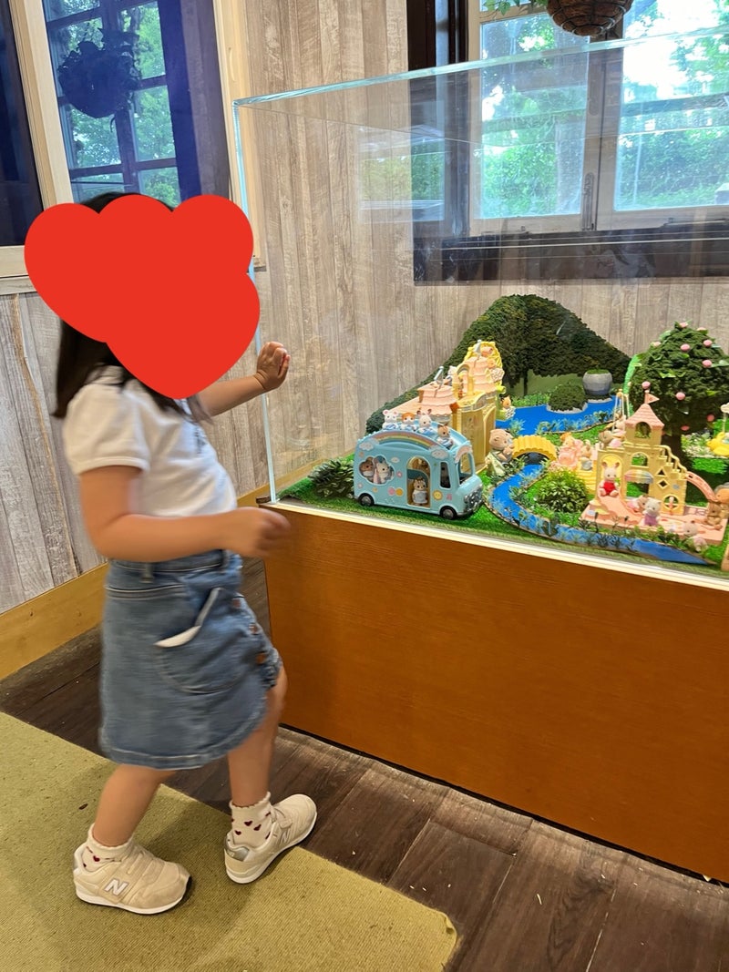 街エリアにあるシルバニアファミリーのショップを見て、「これかう」「あれかう」など言いまくり、隣にあるシルバニアファミリー遊びのお部屋で飾られているシルバニアファミリーのジオラマを見ては、また「これほしい」「これかう」と言いまくり、物欲Maxな娘でした(笑)