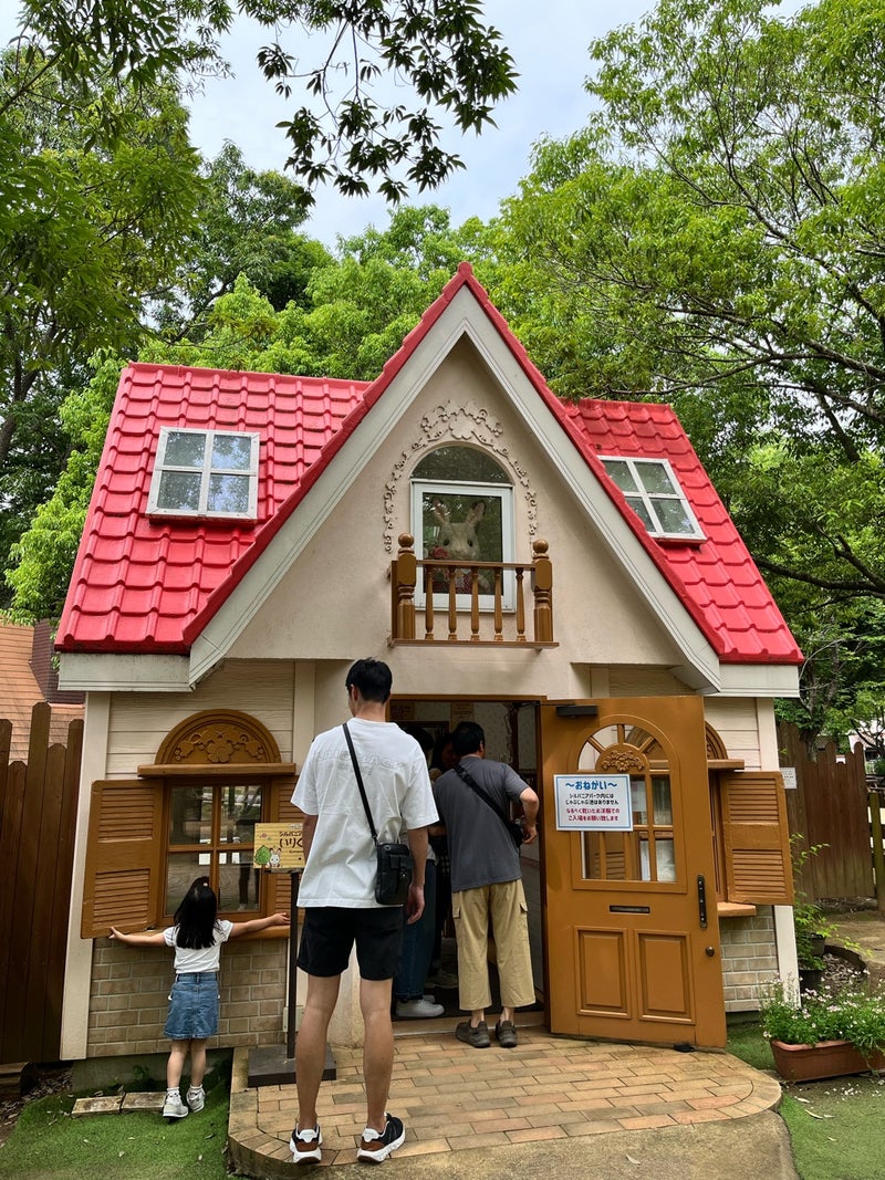等身大の赤い屋根のお家がシルバニアパークの入口となっており、それを見た瞬間私が大興奮しました。