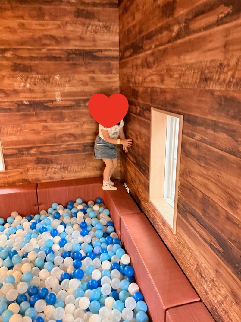 ↑おとまりファミリーコテージ内のボールプール。狭いけど娘は好きだったようです。