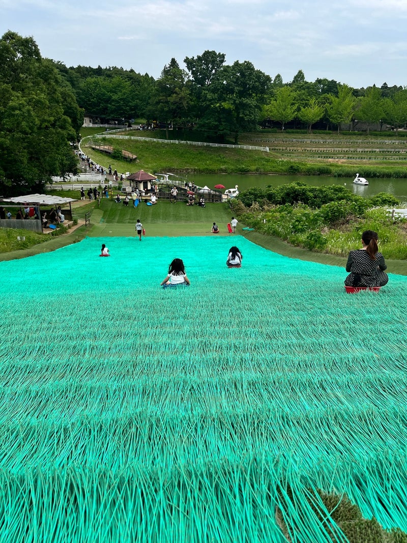 シルバニアパークの後は、ボート池エリアに向かい、芝すべりをしました。