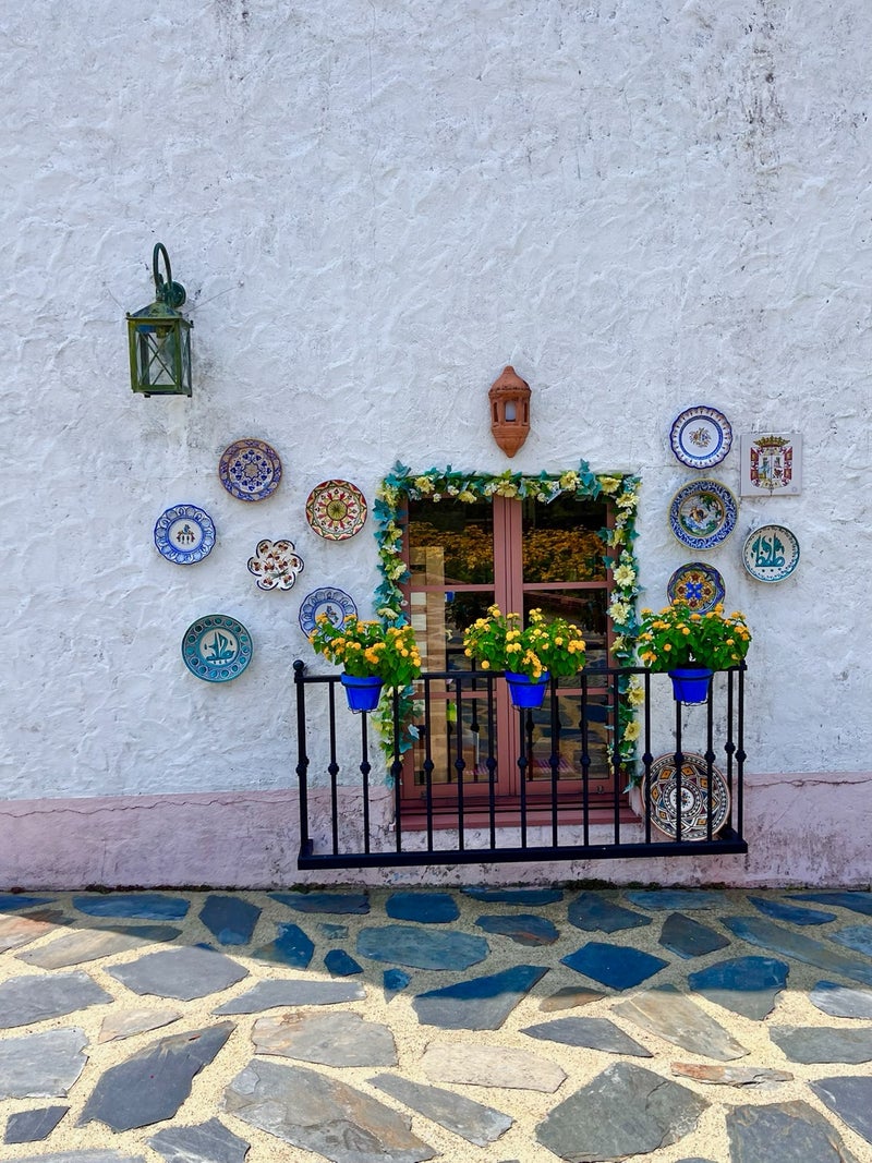 真っ白な壁に、綺麗なお皿が飾られていたり、家の窓に色とりどりの花が飾ってあって、新婚旅行で行ったギリシャのサントリーニ島の景色を思い出しました。