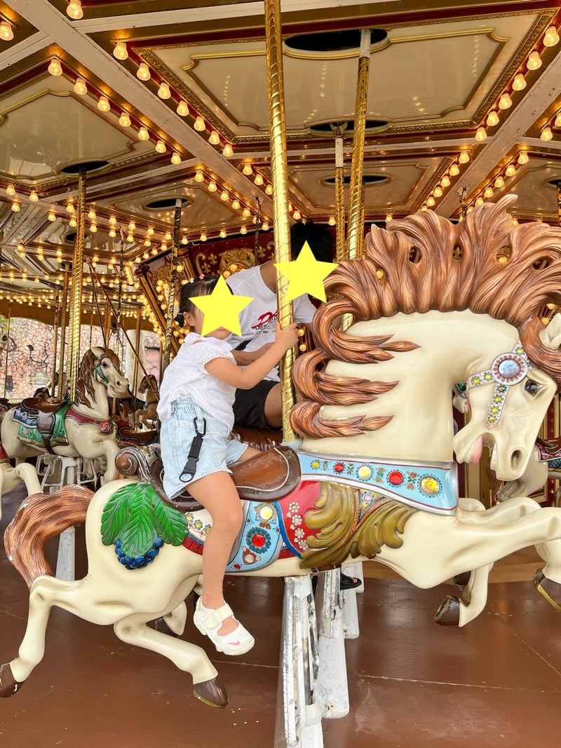 なので、私と娘がメリーゴーランドに乗っている間に、夫は待ち時間ゼロで念願の上記ジェットコースターへ行くことができました。